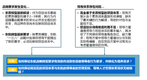 面对航空业严峻竞争形势,东航以深刻的洞察力率先提出“打造综合服务集成商”战略,并通过“一三八”推动战略转型。东航战略对领导者要求的变化及现有体系落地存在的实际问题要求对东航领导力培养体系进行系统性升级优化。