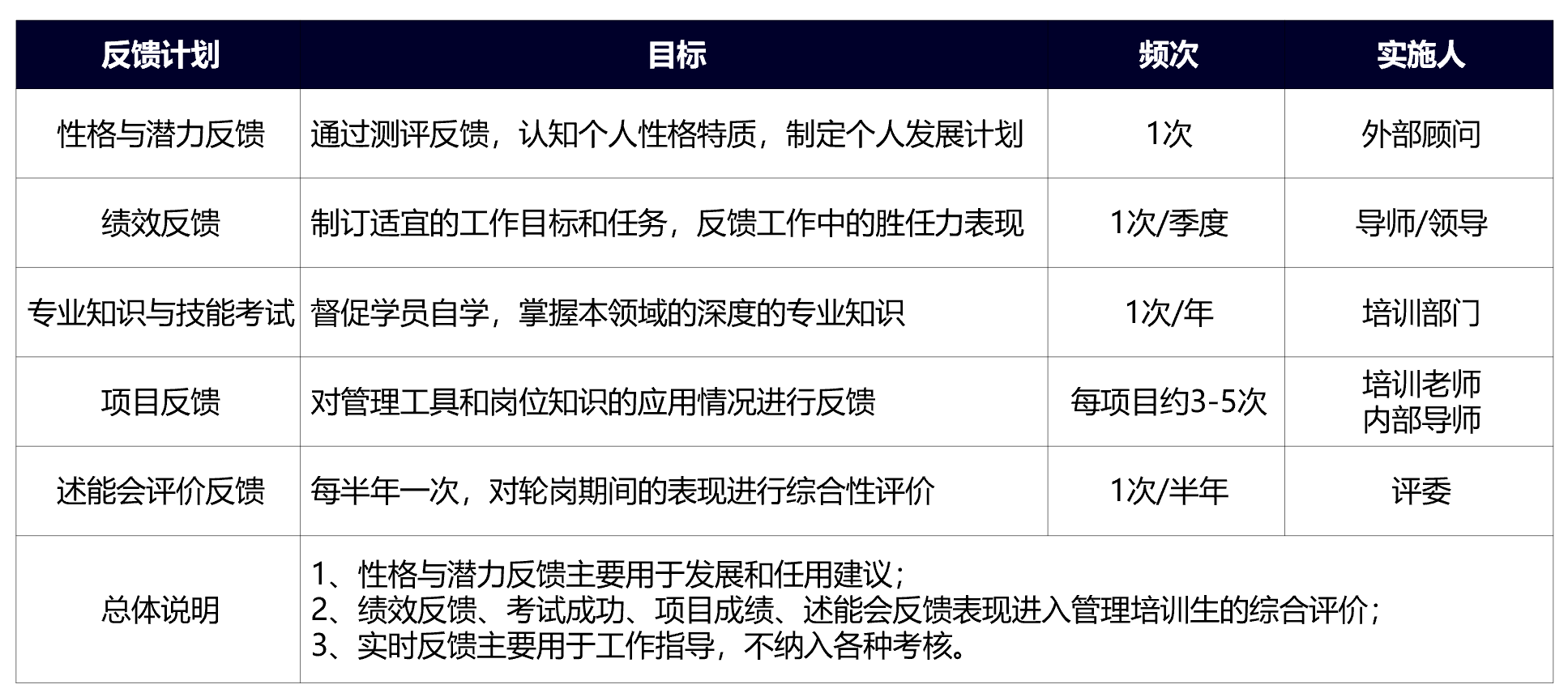 导师匹配好之后,合思管理将与管培生导师、管培生、人力部门、培训部门共同围绕管培生测评结果、待发展目标进行充分讨论,建立高度匹配、个性、有效的个人发展计划(IDP)。IDP是管培生培训、轮岗、项目、反馈等各培养子计划的载体。